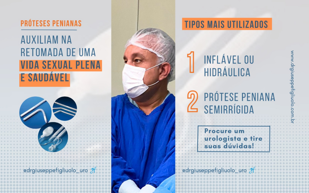Opção para pacientes com sequelas como disfunção erétil pós-tratamento contra o câncer de próstata e para homens que desenvolvem a impotência sexual e que não respondem aos tratamentos medicamentosos (orais e injetáveis), as próteses penianas têm apresentado um percentual de satisfação em quase 100% dos casos. O implante também auxilia na melhoria da qualidade de vida de pacientes com esse perfil, explica o cirurgião uro-oncologista da Urocentro Manaus, Dr. Giuseppe Figliuolo.